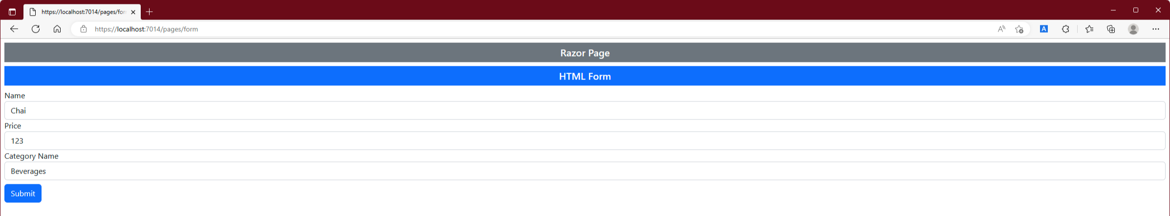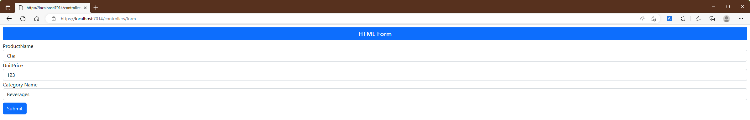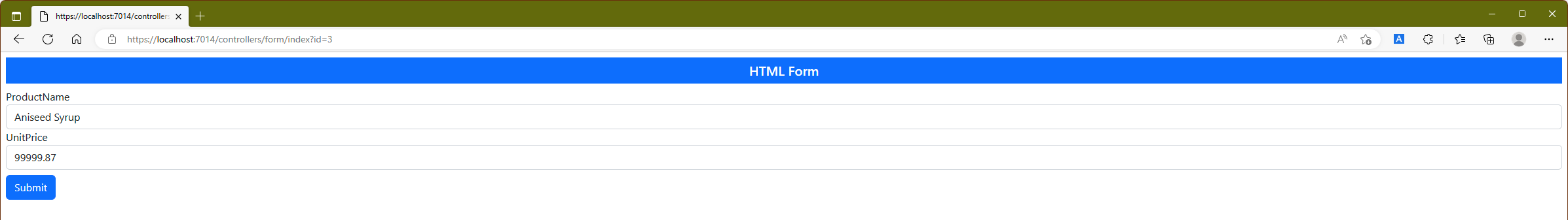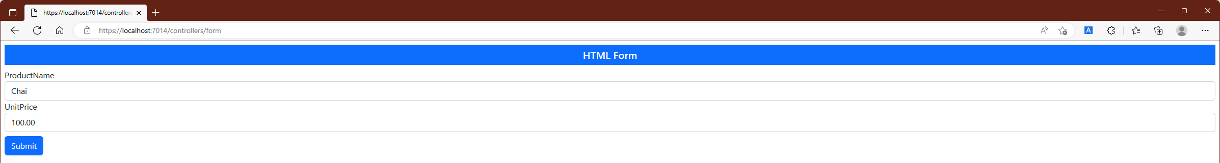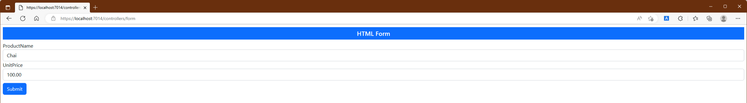 public IActionResult SubmitForm(string ProductName, decimal UnitPrice)