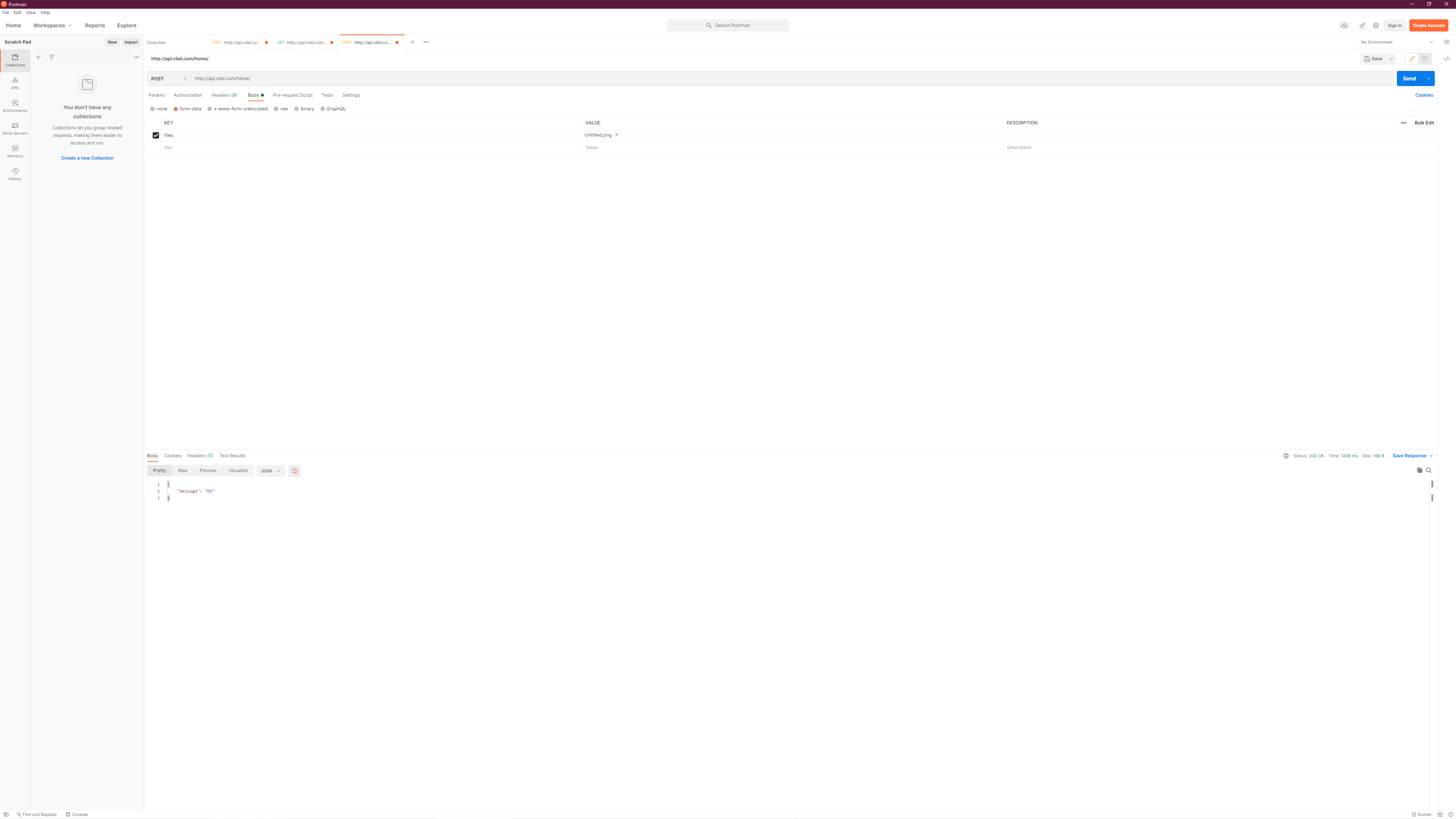 파일이 업로드될 위치는 wwwroot안에 있는 files폴더라고 가정합니다. PostMan을 사용하여 위 메서드를 테스트해 봅니다.