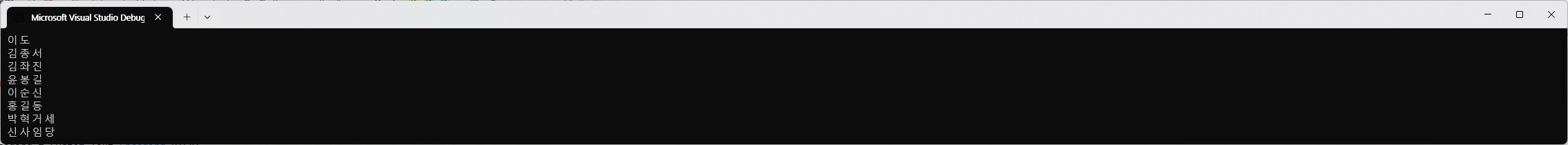 names[1] = "유관순"; //이도를 유관순으로 변경 -> 유관순은 '이'자로 시작하지 않는다.