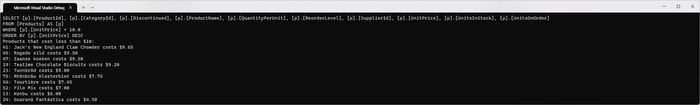 IQueryable<Product> filteredProducts = processedProducts.Where(product => product.UnitPrice < 10M);