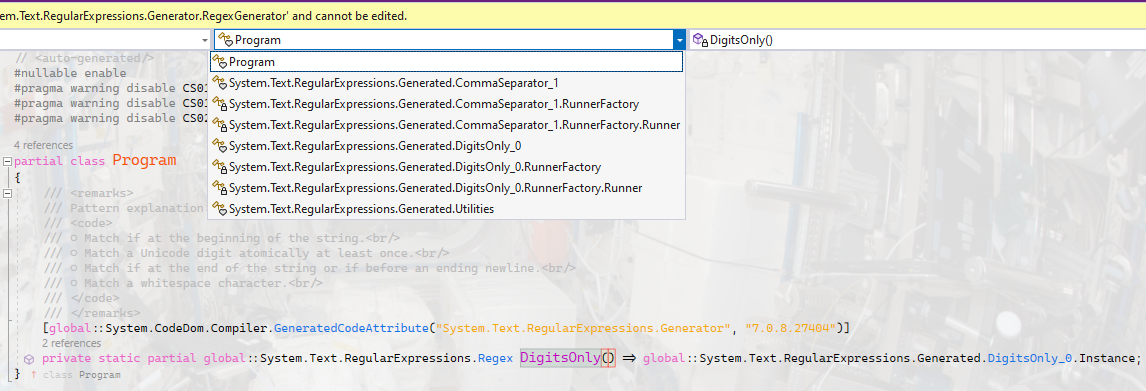 WorkingWithNumbers project의 Program.cs에서 아래와 같이 2개의 복소수를 더하는 문을 추가합니다.