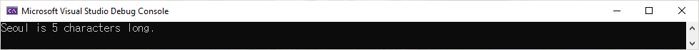 Console.WriteLine($"{city} is {city.Length} characters long.");