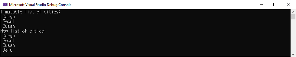 string cities = "Seoul,Busan,Daegu,Daejeon,Jeju";