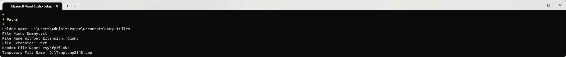 Console.WriteLine($"Random File Name: {GetRandomFileName()}");