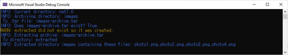 Console.WriteLine($"Working with: {newFolder}");