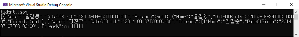 Program.cs에서 JsonSerializerOptions을 설정할 때 PropertNameCaseInsensitive, WriteIndented와 IncludeFields부분을 주서처리하고 예제를 다시 실행해 보면 결과를 다음과 같이 바뀌게 됩니다.