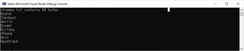 Console.WriteLine($"Reading contents of {backupFile}:");