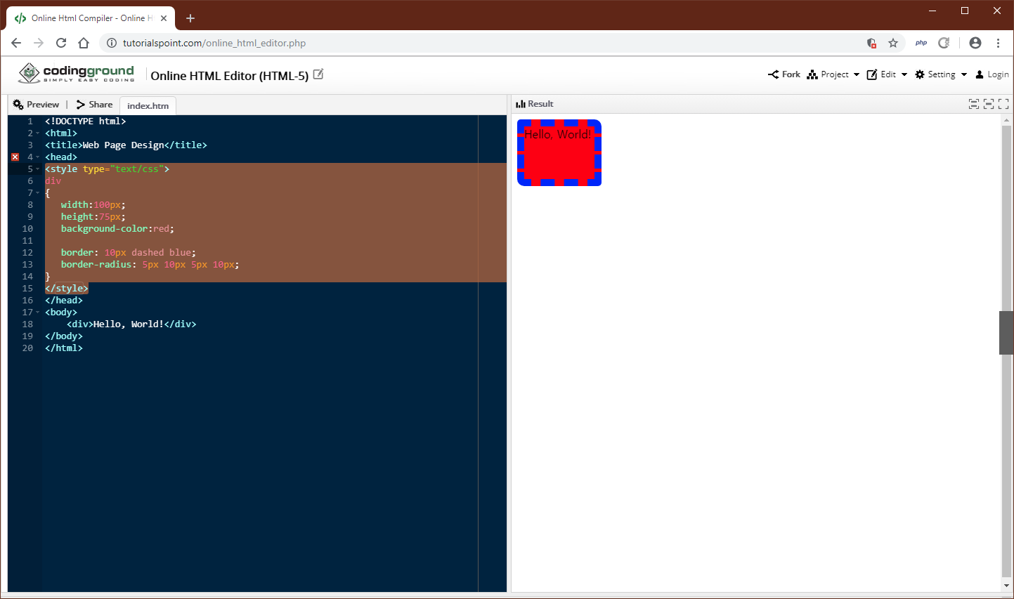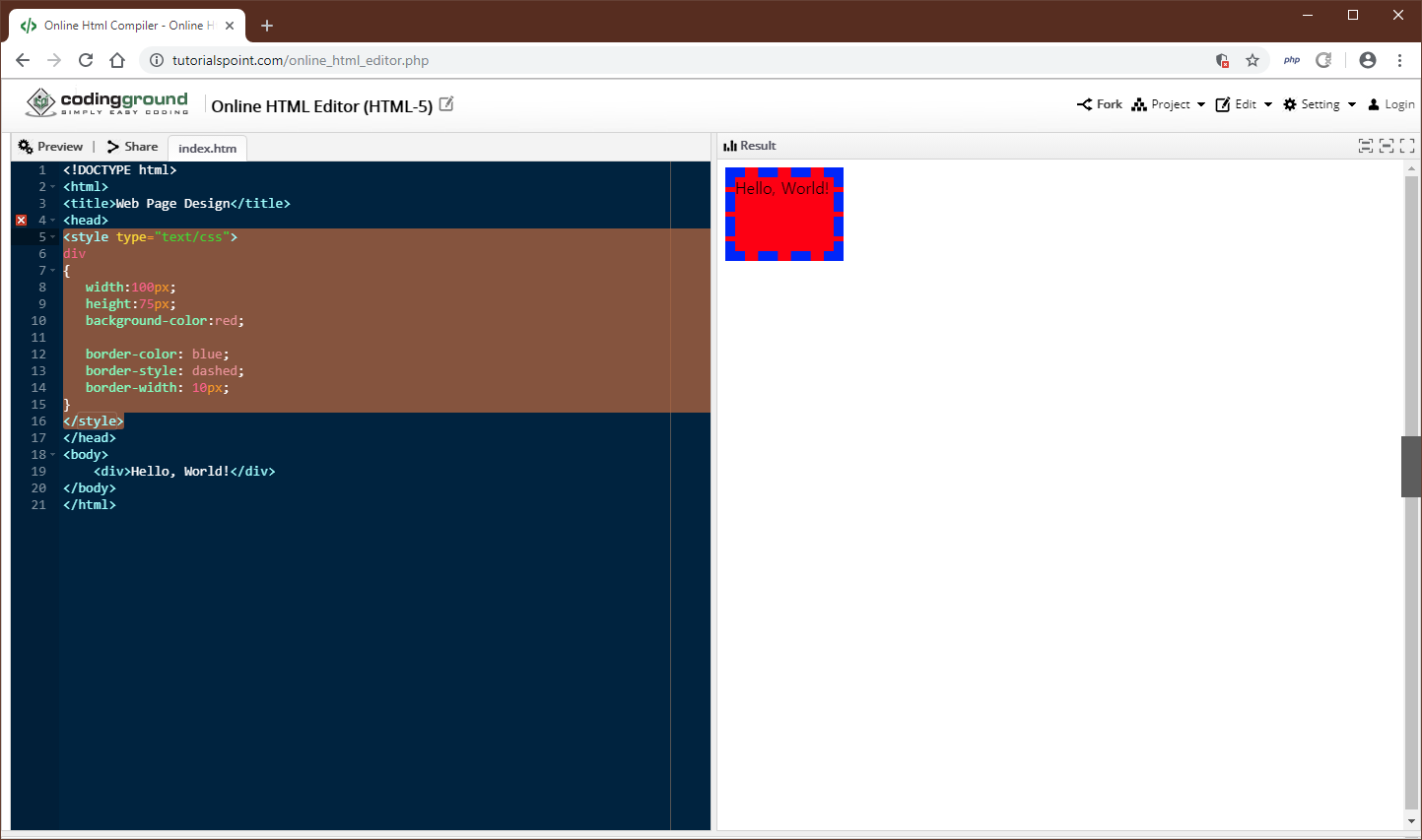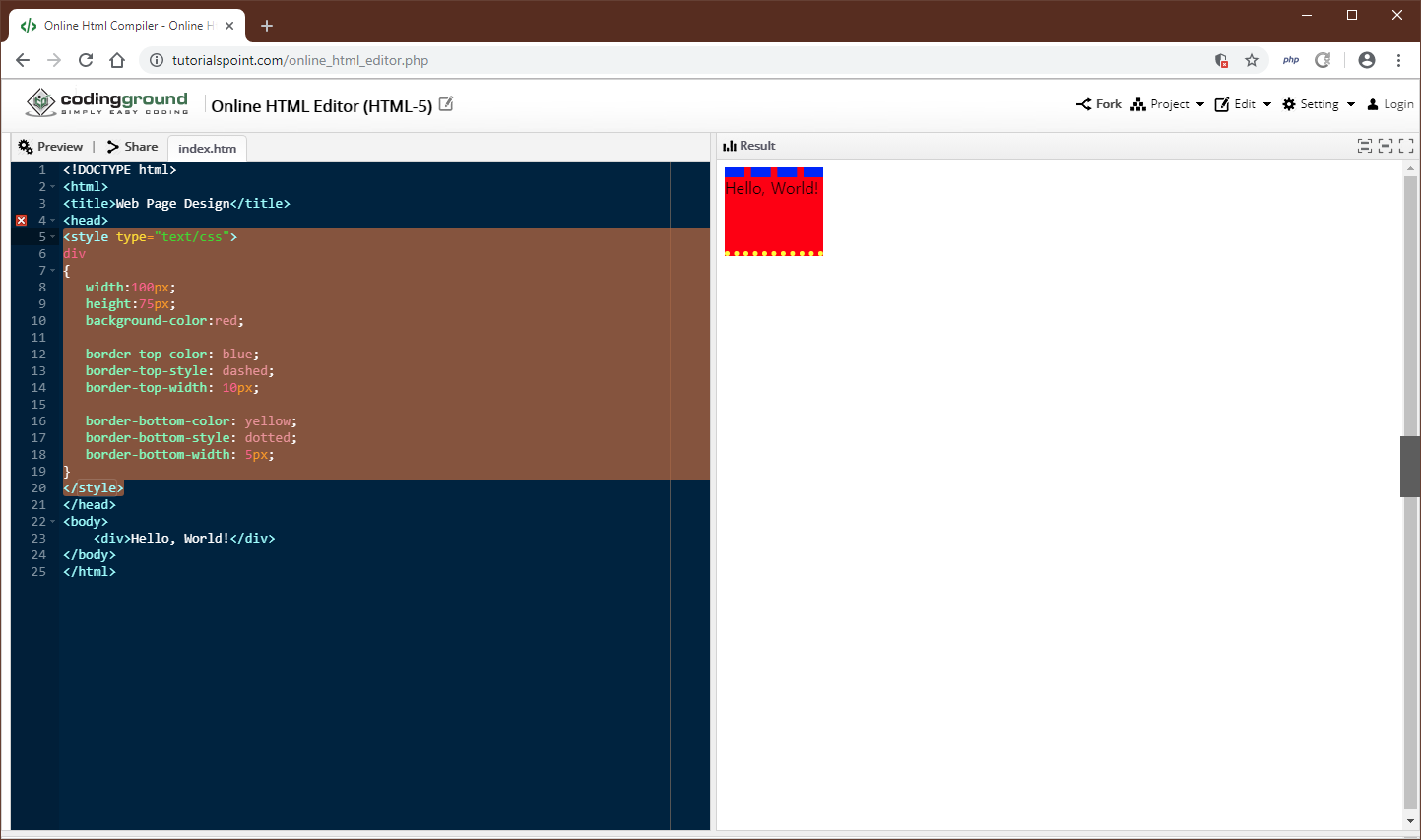 테두리 관련 속성은 border-로 시작하며 width는 테두리, color은 색상, style은 테두리 형태를 지정합니다. 테두리를 표시하려면 이 3가지 속성을 모두 지정해야 합니다.