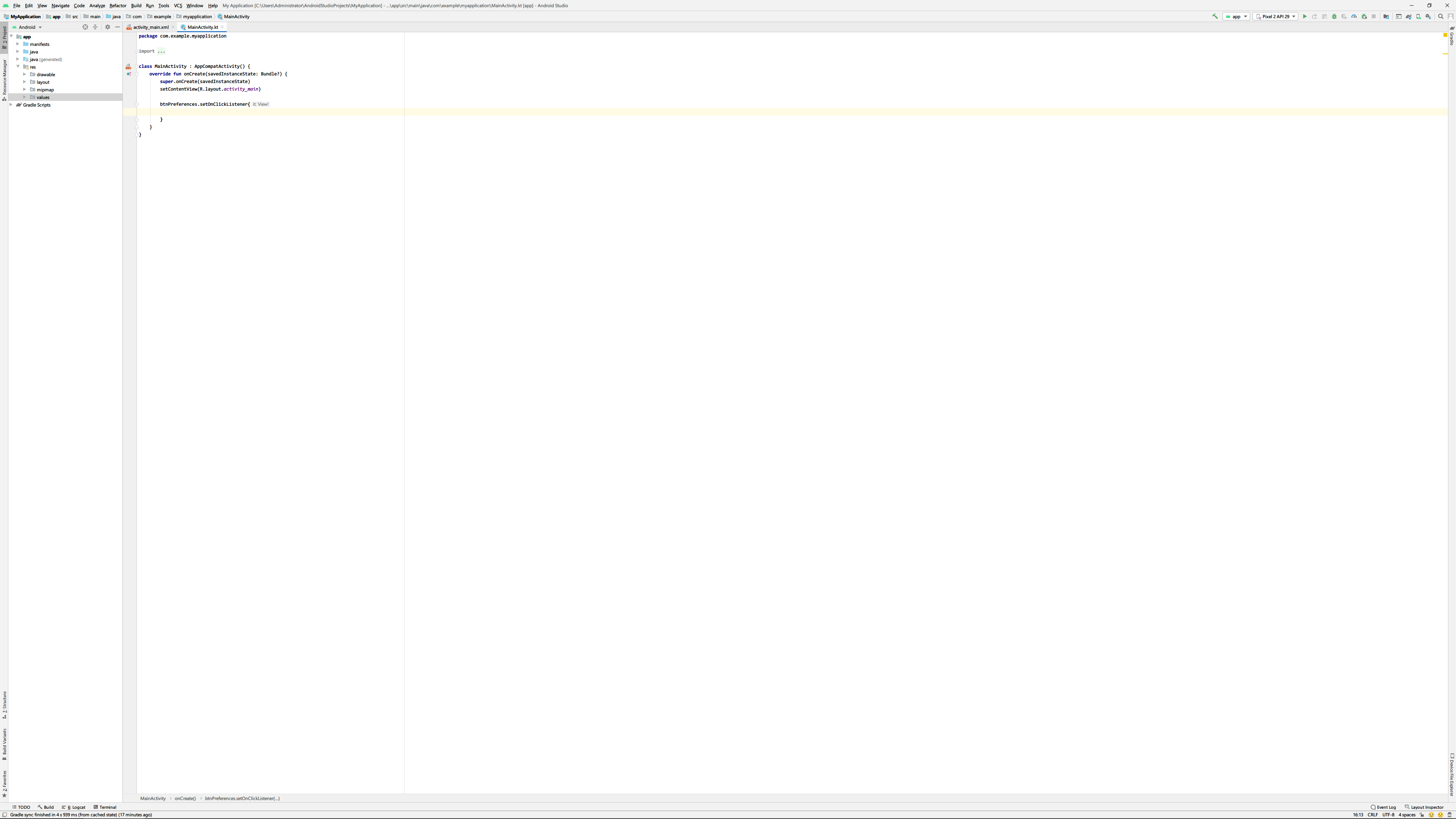 Preferences를 알아보기 전에 우선 Activity화면에서 아래와 같이 버튼 하나를 추가합니다.